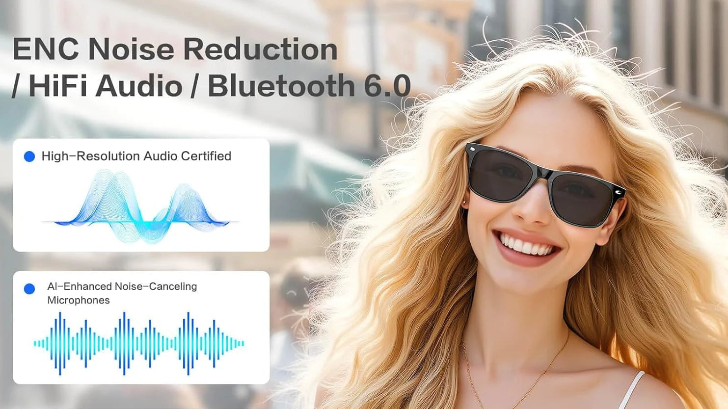It's equipped with a 1080P video camera and a dual-microphone system. And a 270mah battery ensuring up to 4 hours of playback.